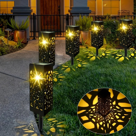 🌞 Solar-Gartensteckleuchte – Quadratisches, durchbrochenes Hofdesign, Automatisch & Wasserdicht – Für Weg, Garten & Atmosphäre, PP