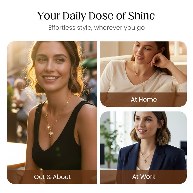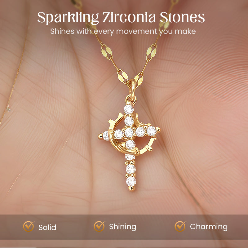 ELEGANTER KREUZANHÄNGER - Ein wunderschön gearbeitetes Kreuz, verziert mit funkelnden Steinen, dient als Symbol für Glauben und Hingabe. Es verleiht Ihrem täglichen Outfit einen Hauch von zeitloser Anmut und spiritueller Bedeutung.