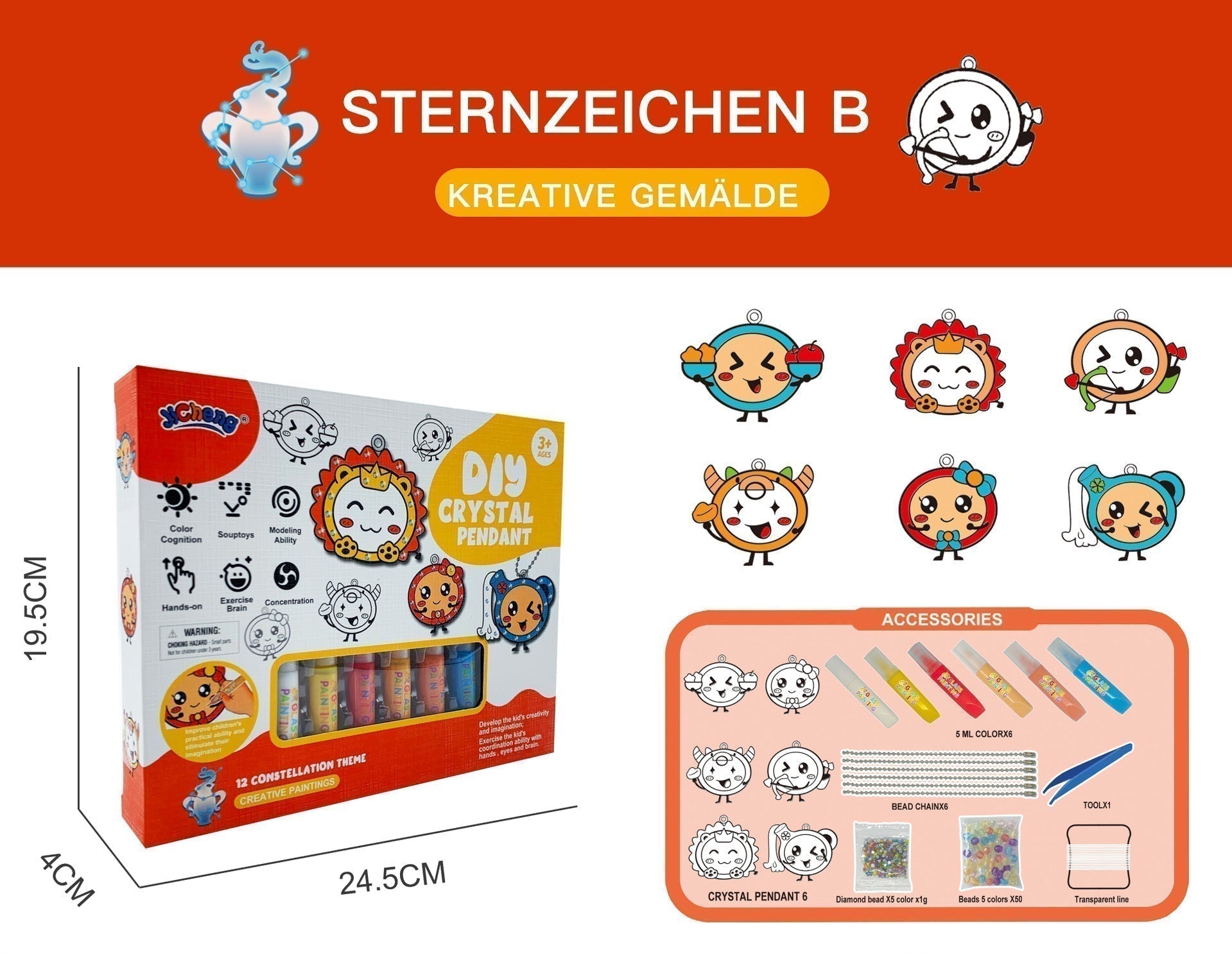 Im Paket enthalten:Kristallanhänger6 + Farbmalerei6 + Kette6 + Pinzette1+ 3 Packungen Diamanten +1 Packung farbige Perlen +Schnur*1
