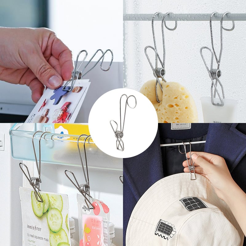 [Edelstahlmaterial] Der Clip besteht aus hochfestem Edelstahldraht, der langlebig und rostfrei ist. Im Gegensatz zu gewöhnlichen Kunststoff- oder Holzmaterialien sind Edelstahlclips im täglichen Gebrauch langlebiger.