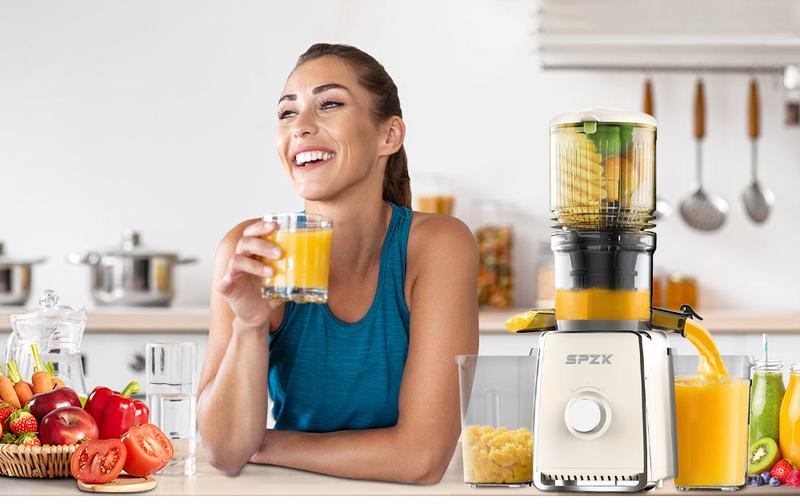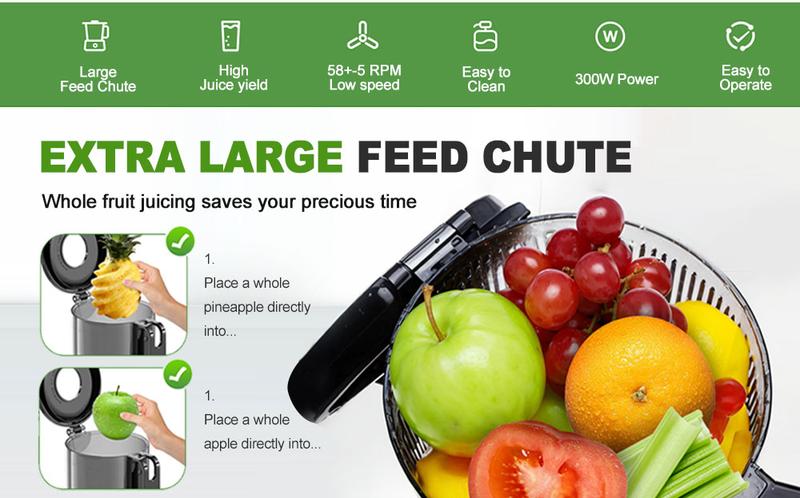 Elektrischer Haushaltsentsafter mit großem Durchmesser, vollautomatisch und multifunktional, für Obst und Gemüse, der kein Vorschneiden erfordert.