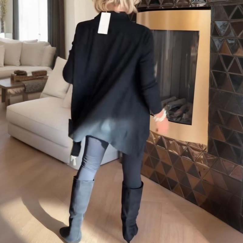 ASYMMETRISCHER SAUM – Das auffällige Element ist der unregelmäßige Saum, der einen schmeichelhaften Fall erzeugt und die Körperproportionen betont. Dieses Design mildert die Silhouette, lässt die Beine länger wirken und sorgt für eine ausgewogene Form. Ob zu Hosen, Jeans oder Röcken – der asymmetrische Schnitt sorgt für mühelose Eleganz, mit der Sie auffallen, ohne übertrieben zu wirken.