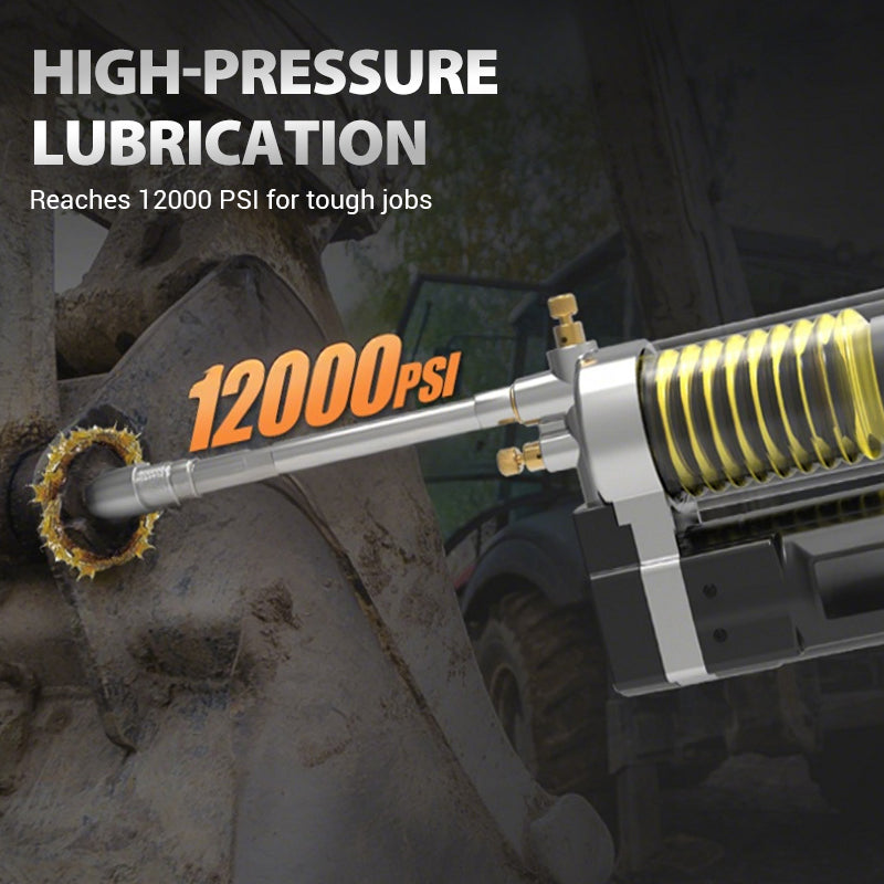 MAXIMALER DRUCK VON 12.000 PSI – Erzeugt einen Druck von bis zu 12.000 PSI und drückt das Fett mühelos durch verstopfte oder festsitzende Anschlüsse. Diese Hochdruckleistung gewährleistet eine vollständige Schmierung und einen optimalen Schutz der Geräte vor Reibung und Verschleiß.
