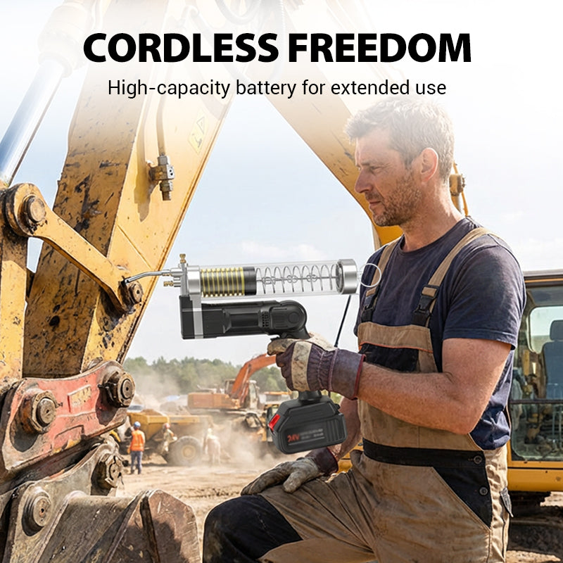 KABELLOSE LITHIUM-IONEN-STROMVERSORGUNG – Ausgestattet mit einem leistungsstarken 24-V-Lithium-Akku bietet dieses Werkzeug vollständige Mobilität und eine lange Betriebsdauer, sodass Sie mehrere Schmierstellen mit einer einzigen Ladung warten können, ohne an eine Stromquelle angeschlossen zu sein.