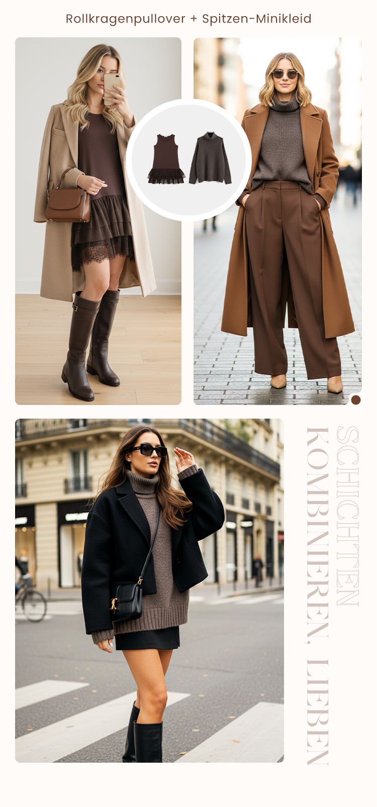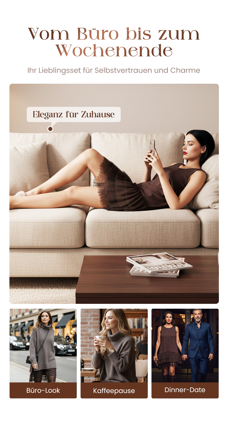 Damen zweiteiliges Set: Pulloverkleid mit Rollkragen und Unterkleid