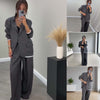 Lieferumfang: 1 * Damen-Zweiteiler: Blazer mit langen Ärmeln & Hose mit weitem Bein