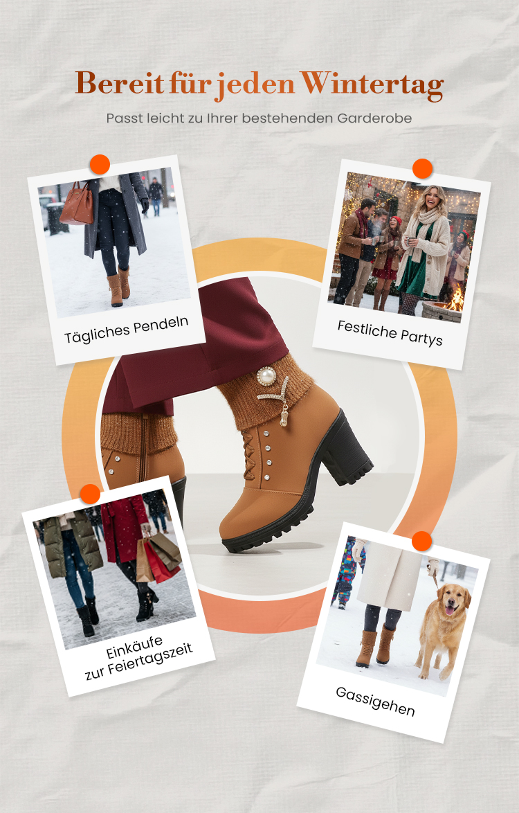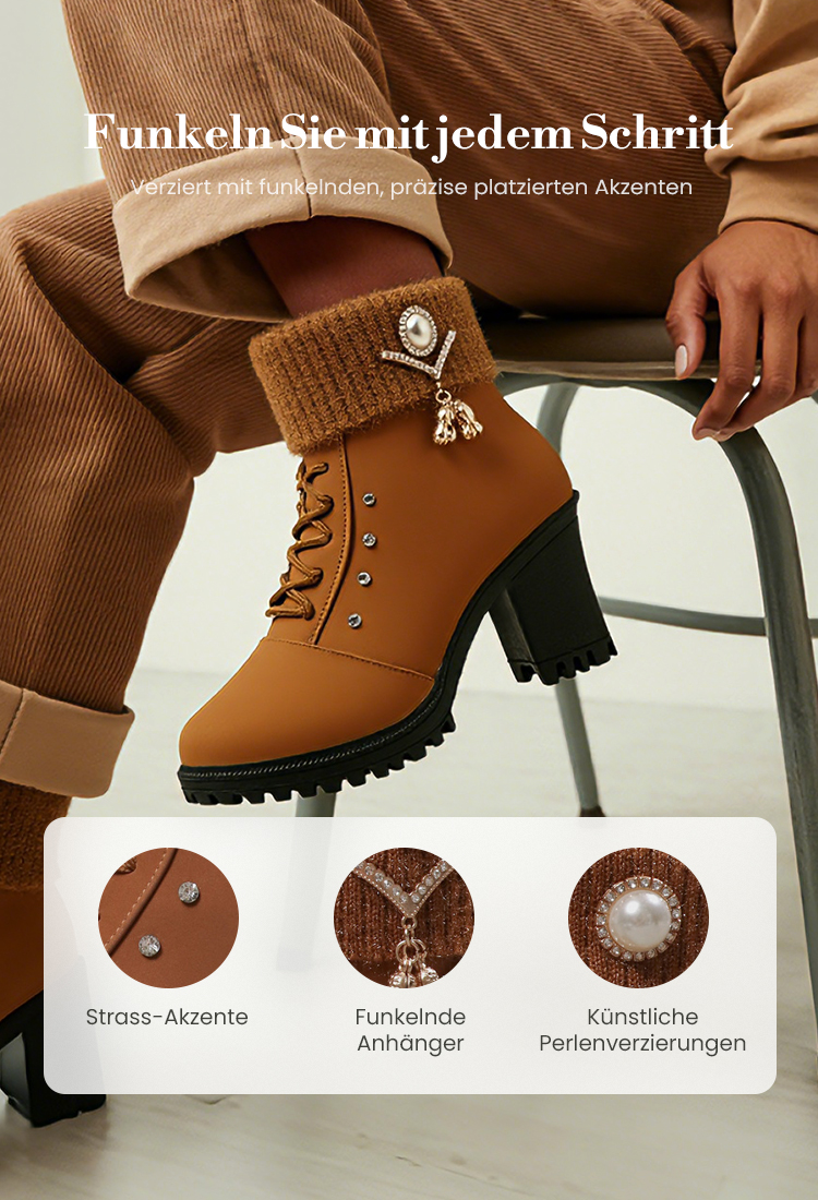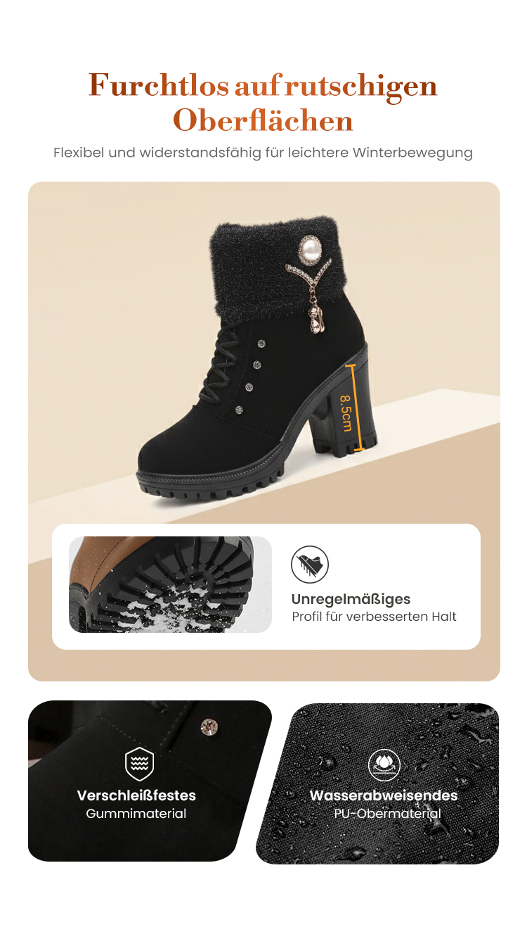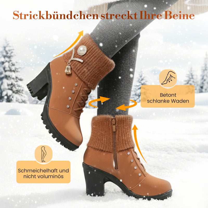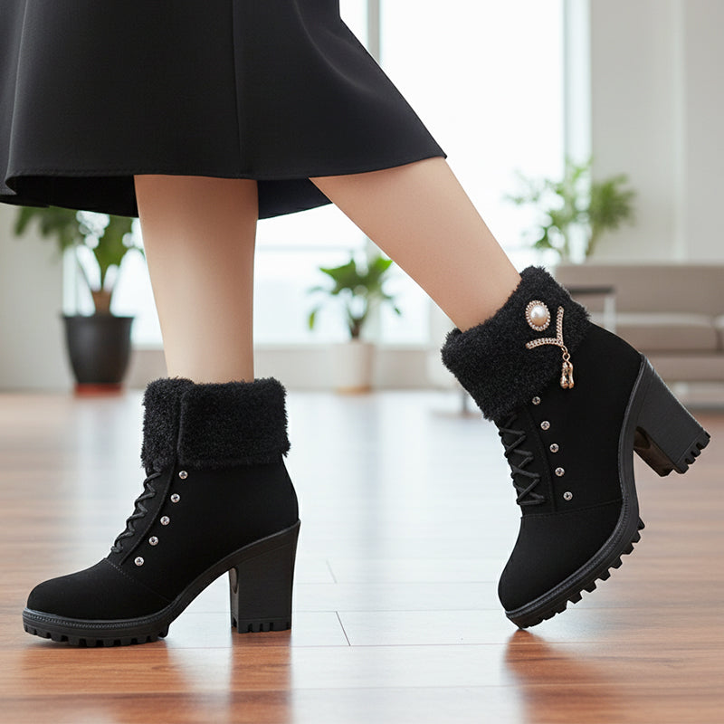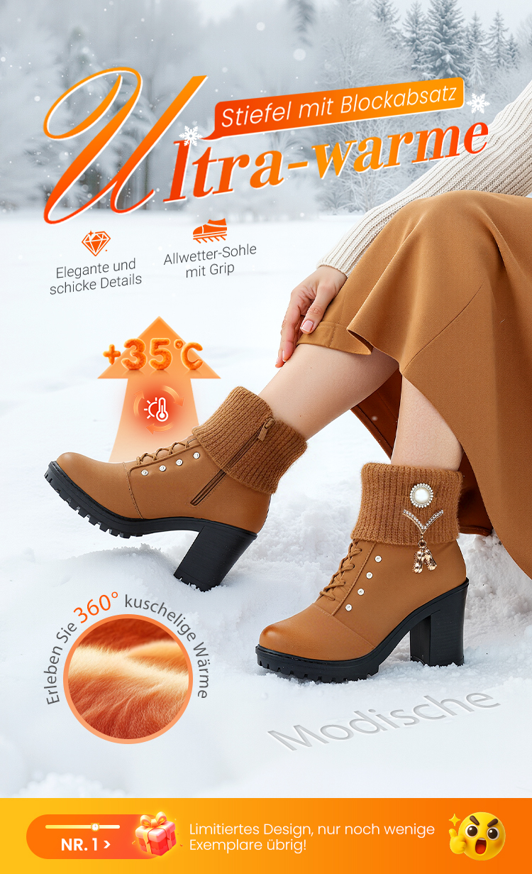 Warm gefütterte Damenstiefeletten mit Blockabsatz