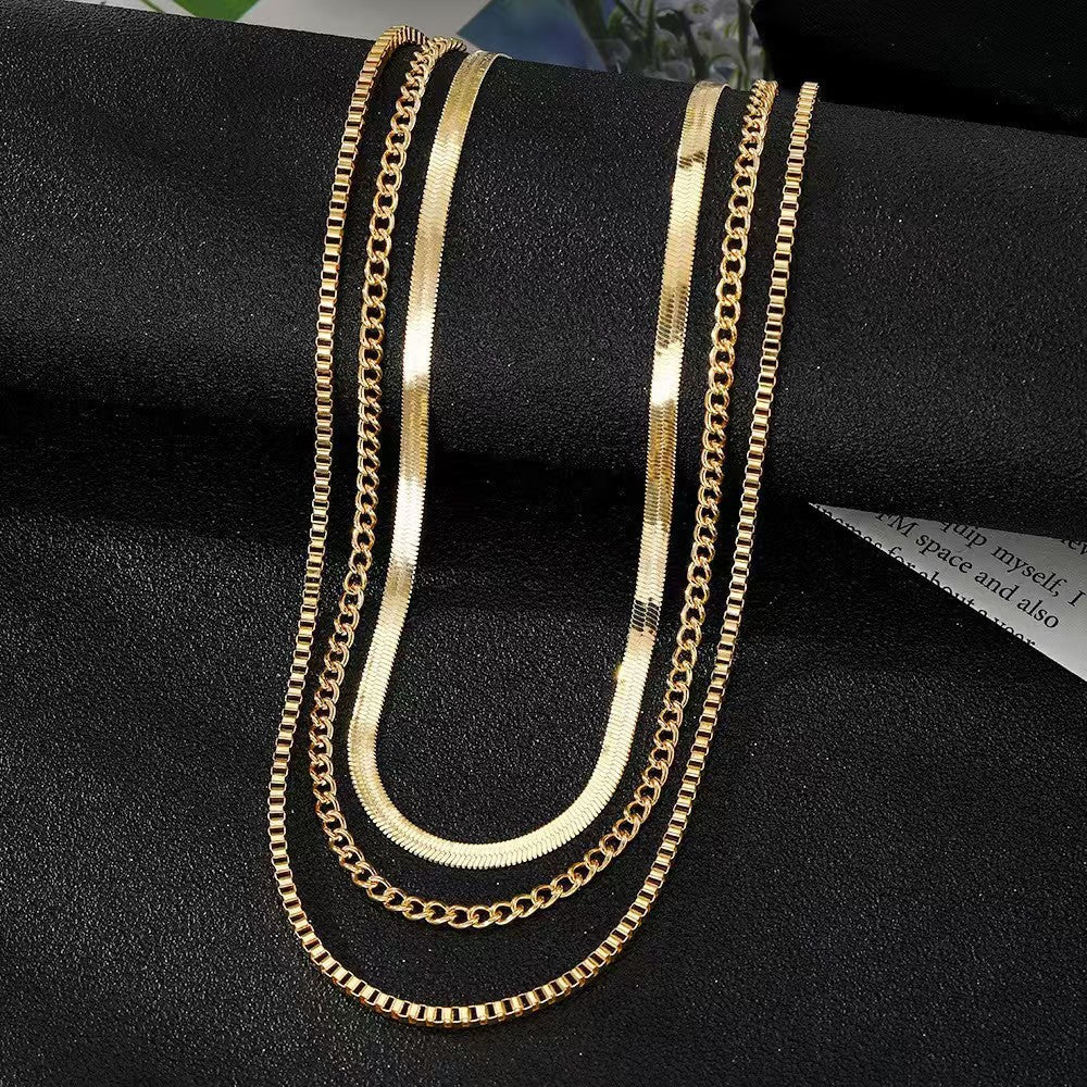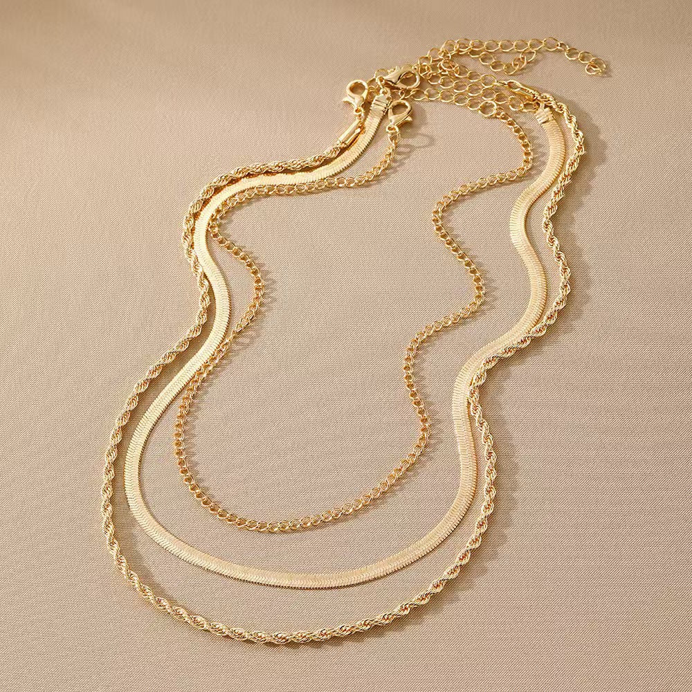 Damen Mehrschichtige Twist- & Schlangenkettenhalskette